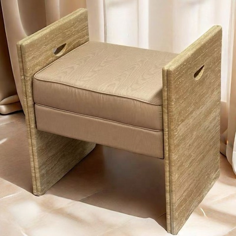 Muebles de Interior para decoración del hogar, mesa auxiliar de esquina de travertino beige natural, silla de travertino de piedra