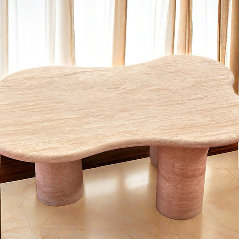 Columnas de travertino natural Base en forma de flor Mesa de piedra Diseño especial moderno Sala de estar Mesa de centro de travertino