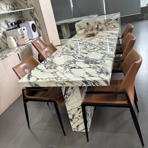 Italiano Calacatta Violeta Mármol Rectangular Lujo 8 plazas Mesa de comedor Muebles de sala de estar modernos Cocina Isla Encimera