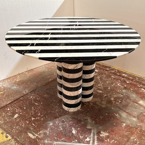 Nordico moderno sala da pranzo mobili a strisce zebrate tavolo rotondo con pietra impermeabile per alberghi ristoranti Villa applicazione