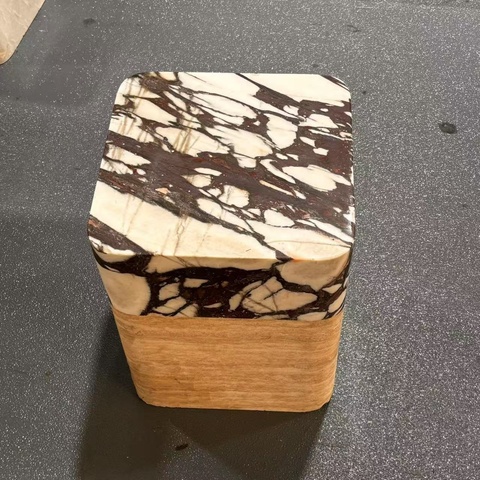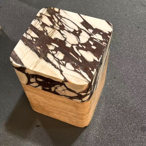 Personalizzato moderno sgabello quadrato unico naturale Beige travertino e Calacatta Viola marmo per mobili soggiorno