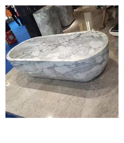 Khắc tự nhiên màu xám đá cẩm thạch hình bầu dục bồn tắm cao đánh bóng dễ dàng-sạch tính năng với thiết kế hiện đại cho khách sạn với drainer