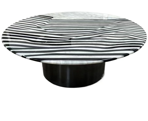 Oturma odası mobilya yuvarlak şekil paslanmaz çelik taban zebra desen mermer sehpa