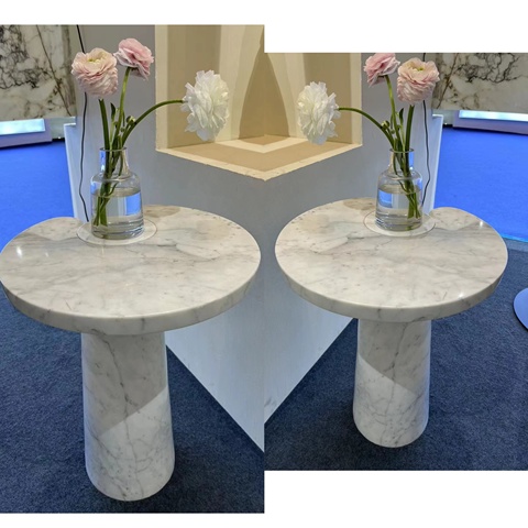 Modern tasarım İtalyan carrara beyaz mermer özel oyma taş yuvarlak uç yan masa mermer kaide sehpa