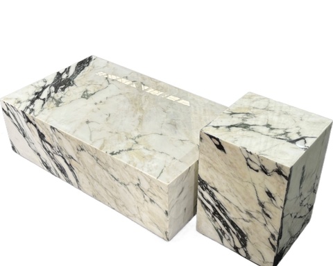 Yüksek kaliteli doğal taş kaide ekran standı ayağı blok mermer kaide sehpa ile yan masa seti
