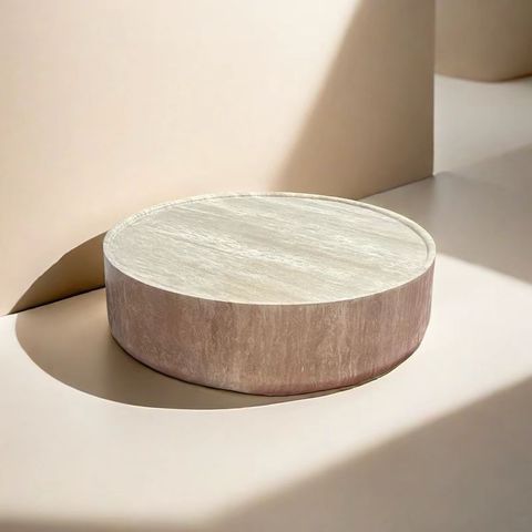 Fabrika özel nordic doğal taş Mesa de kafe oturma odası mobilya yuvarlak bej traverten sehpa